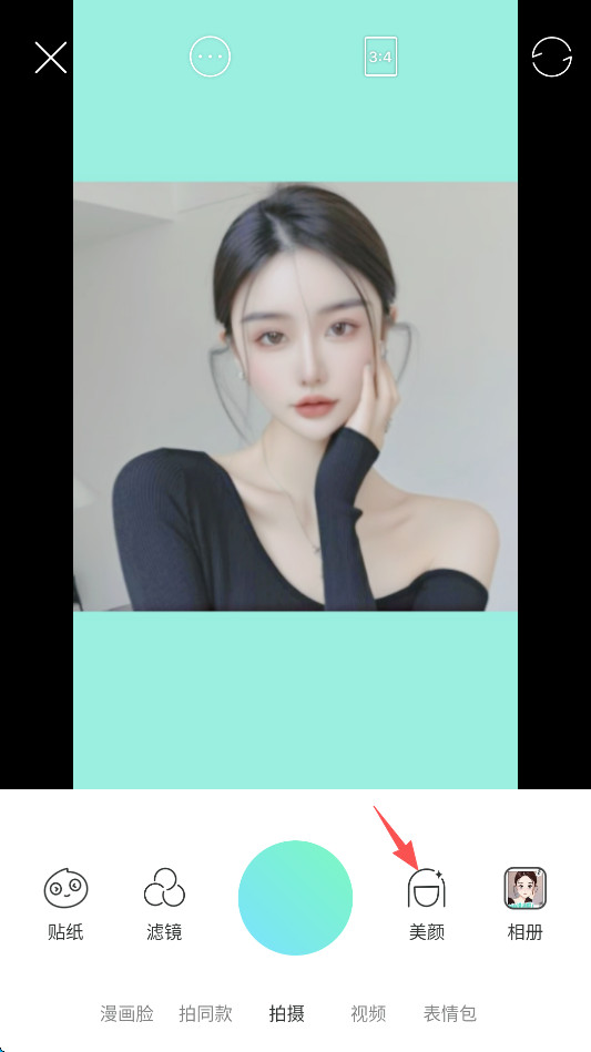 1. 点击屏幕下方的“拍照”标志,进入拍摄界面。