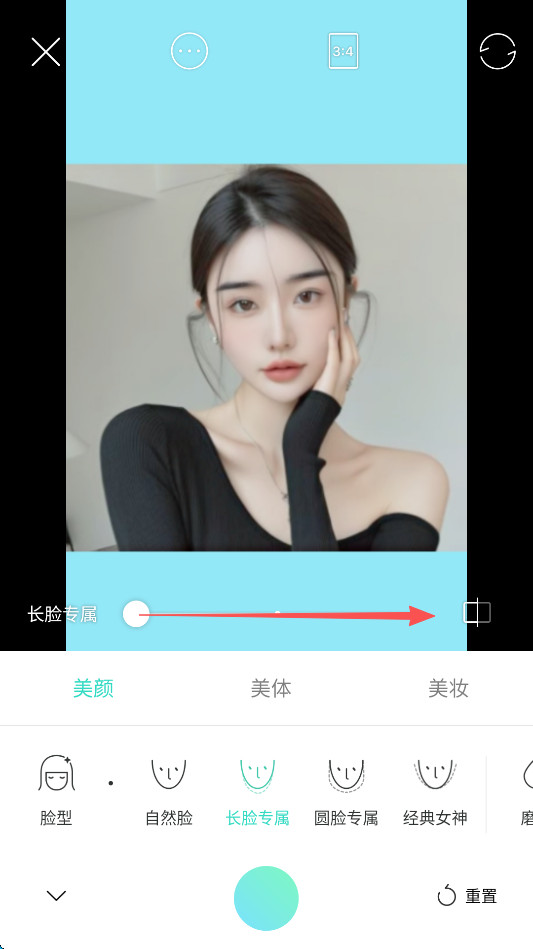 2.默认长脸特效,照片下方可以看到这个脸型调整,可以根据自己的需要调整。