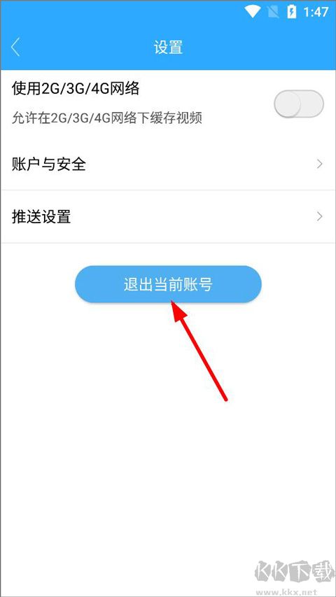 3.进入系统设置界面,可以管理视频缓存、账户安全等内容。选择“退出当前帐户”按钮并再次登录新帐户即可完成更改。