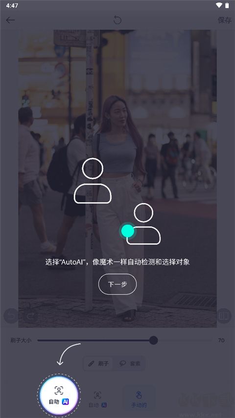 5. 单击“手动”选项。用户需要自己用画笔对对象进行标记,然后完成删除。