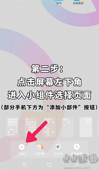 1.打开手机桌面,长按空白区域或两指捏合进入编辑状态。