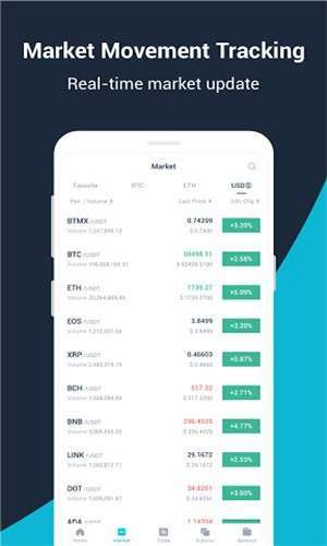 1、每日最新的区块链走势图,随时了解看到货币的涨幅情况;