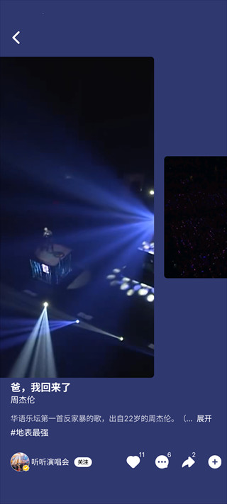 6.点击任意您想观看的作品,向右滑动观看完整歌曲视频,上下滑动切换歌曲。
