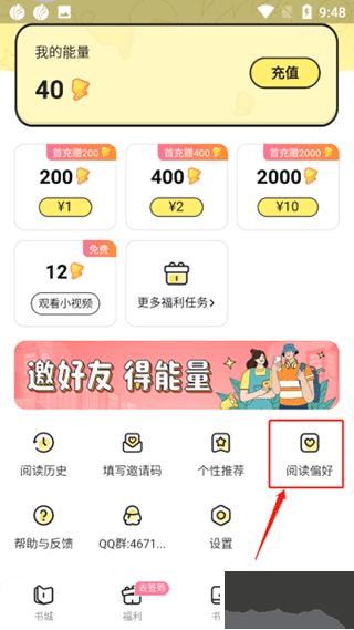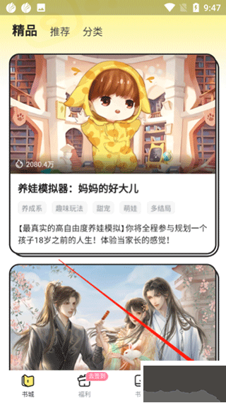 3、简洁易用:启动应用程序,您可以直接访问书店、分类、福利、书架和个人中心。功能布局清晰,查找和阅读更加方便。