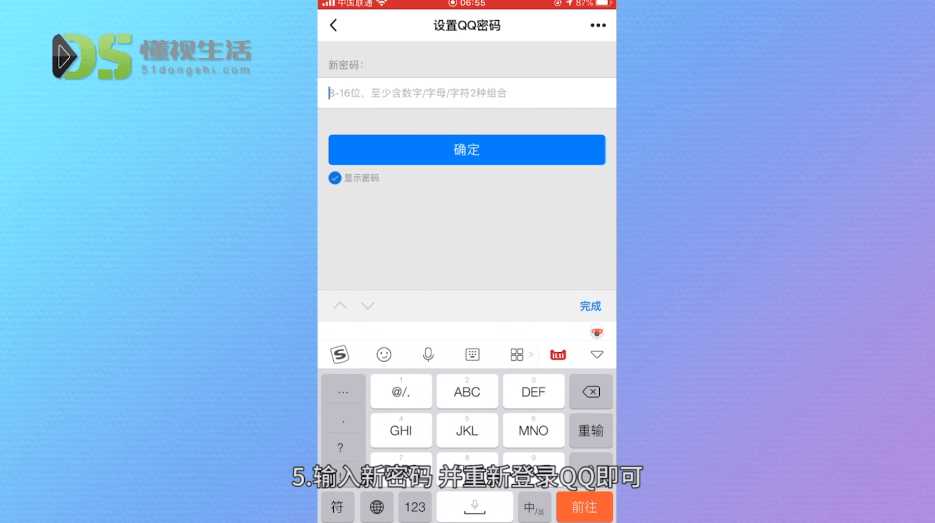 5.输入新密码 并重新登录QQ即可 如果你设置了二代密保(密保问题、密保手机、手机令牌、密保卡),你就可用其中一种进QQ安全中心:http://aq.qq.com →点页面上方的“找回密码”→填上该QQ号码,选择QQ密码→选择通过验证密保直接找回密码, 若还未设置密保或密保丢失、遗忘,页面会