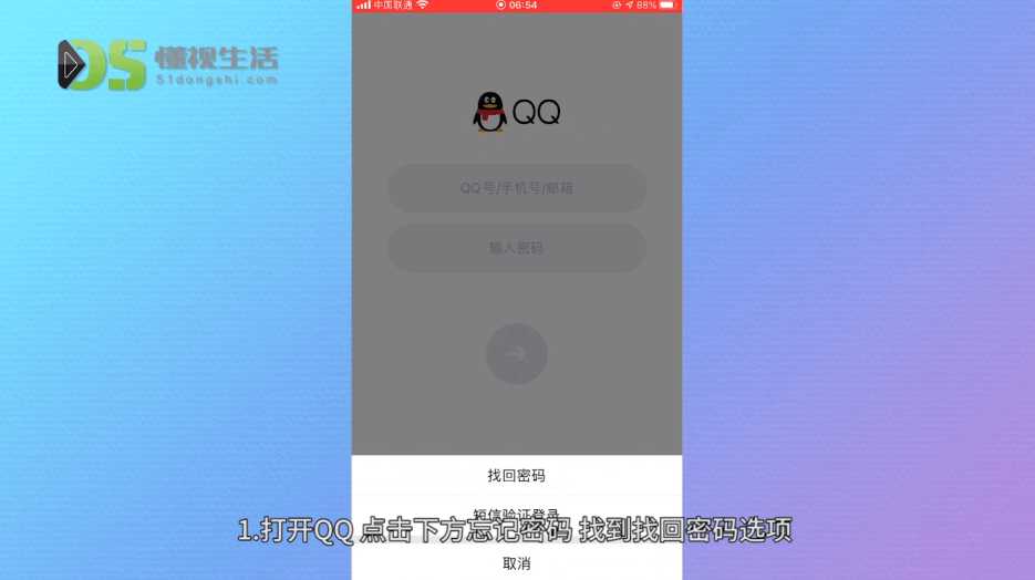 3.进入安全验证 拖动完成拼图 一、手机找回QQ登陆密码的方法步骤: 1、打开手机QQ,在登陆界面的下面,点击[密码找回]; 2、弹出选项选择找回密码; 3、然后输入需要找回密码的QQ号,再填上验证码继续; 4、根据屏幕上的提示,该提示为短信找回密码的固定格式GM+QQ号码+#+新密码(