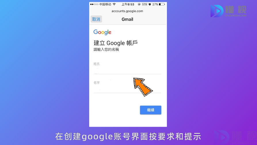 4、选择建立账户,在创建google账号界面按要求和提示填写个人的相关信息即可。