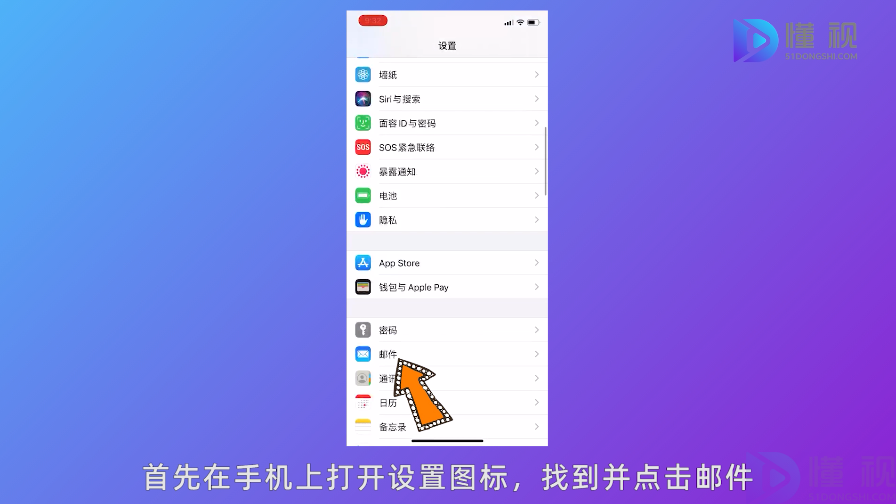 苹果手机 1、首先在手机上打开设置图标,找到并点击邮件。