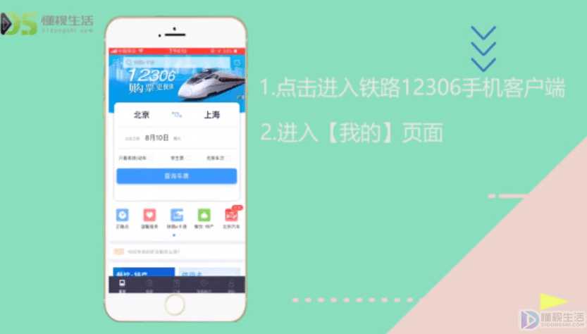 1.点击进入铁路12306手机客户端。 2.进入【我的】页面。