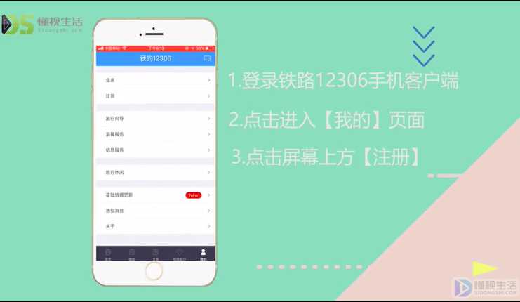 4.点击“注册”,即可完成12306号的注册。 在手机铁路12306App上,注册用户名的具体步骤如下: 1、打开铁路12306App,进入主界面。(如果没有12306的App,则直接去应用中心下载后再操作) 2、在打开的铁路12306应用界面中,进入我的12306,点击注册项。 3、填写好注册页面中要求的信息,