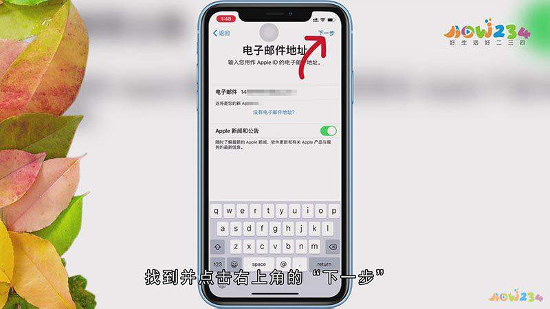 然后需要填写你的电子邮件地址,输入完成后,找到右上角的“下一步”,继续操作,接着你需要设置你的密码,输入完成后在验证框再次输入,继续点击“下一步”;