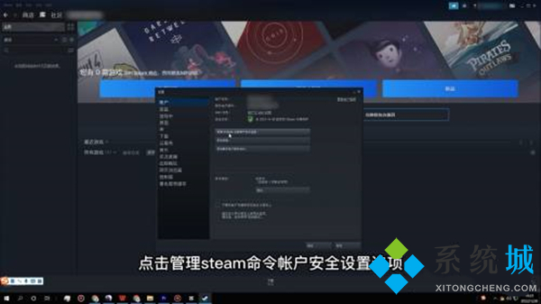 2、然后来到【帐户设置面板】,点击【管理steam命令帐户安全设置选项】;