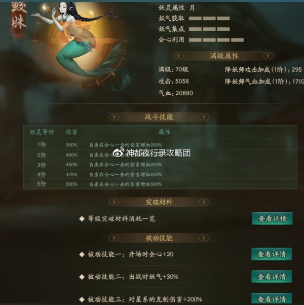 驰狼 ⑥鲛姝(shu):不能变身,本身被动技能较弱,满级只有20开场会心(同属性偏低),30开场妖气(同属性偏低),200%对星伤害(现在星属性副本实在太少,该属性实用价值待提升),而且需要的材料也很多。不过由于是月系,除日系之外的副本boss只对她造成50%伤害,肉的一批(和阿凶一个道理但是主要是收藏 谁选自选只为了抗大233),要是喜欢或者收藏可考虑
