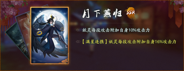 随着大人降妖之旅的不断深入,掌司将大人的部分光辉事迹纳入了拓印之中。本次活动中,掌司大人为您带来了三张全新的拓印:SSR拓印「月下燕归」、SR拓印「神女恩泽」和R拓印「斫琴台」。 这三张拓印将于下次维护后正式加入剧情卡池,成为常驻拓印。