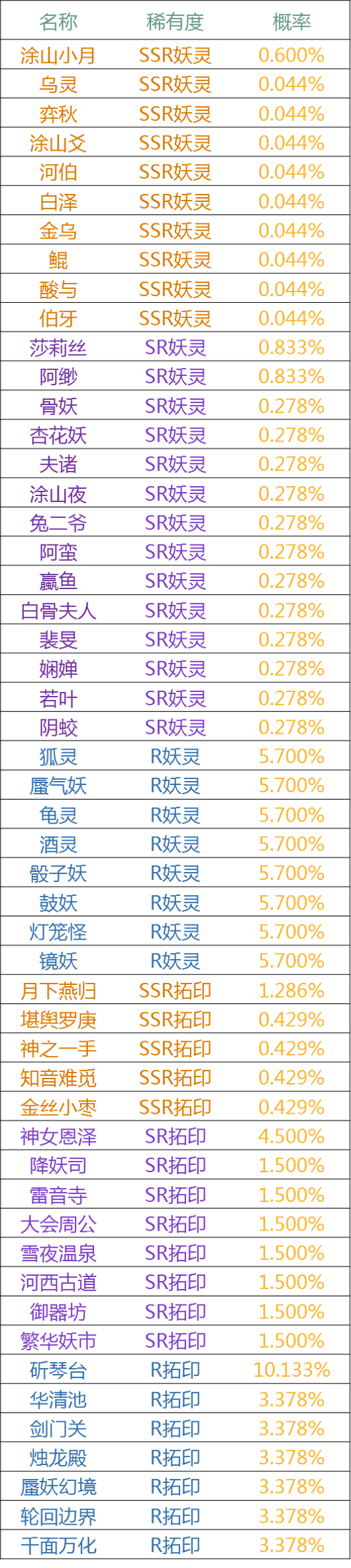 第 6 页 神都夜行录500万登录纪念白泽召唤卡池概率 「500万登录纪念 · 白泽召唤」召唤池概率公示
