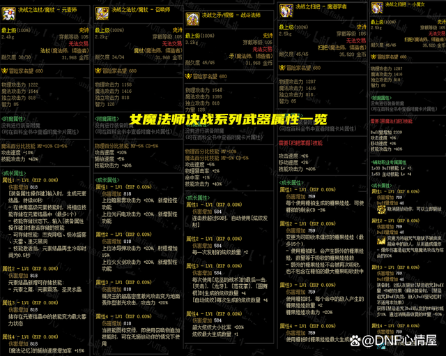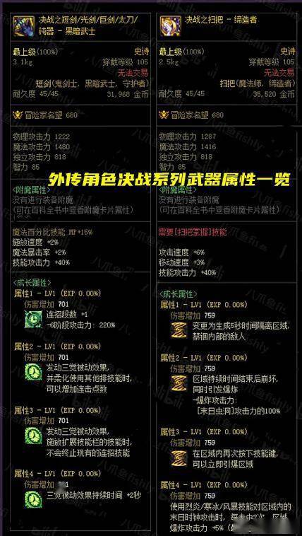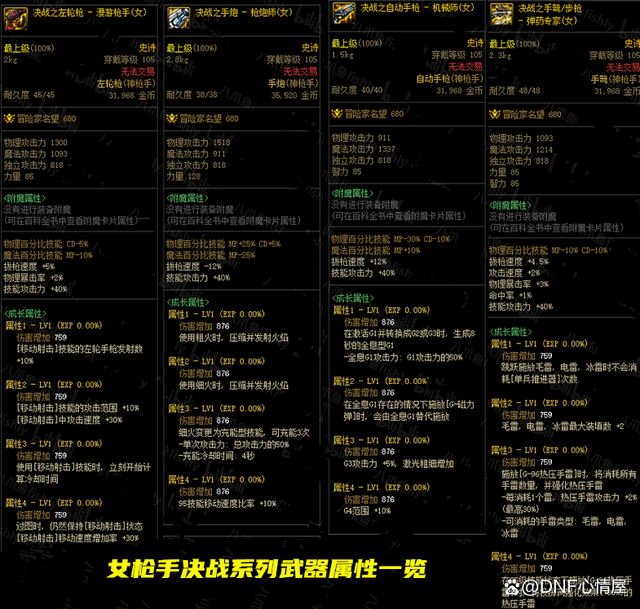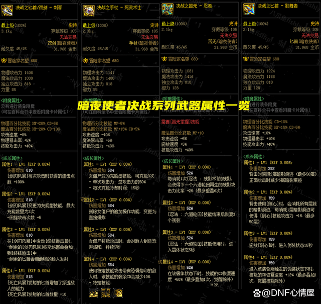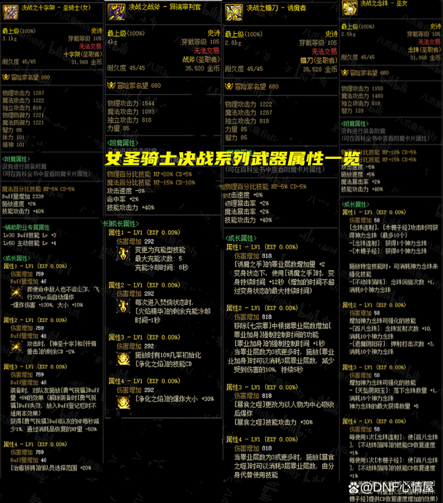 DNF全职业105级决战武器属性最新_DNF105级版本全职业决战武器技能属性汇总