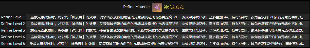 原神神乐之真意是原神的一把五星武器,还有很多小伙伴对神乐之真意突破材料需要哪些,下面就跟小编一起看看具体需要哪些材料吧。 施放元素战技时,将获得「神乐舞]的效果,使装备该武器的角色的元素战技造成的伤害提高12%,该效果持续12秒,至多叠加3层。持有3层时,该角色获得12%所有元素伤害加成。 突破材料可以见上图,神乐之真意是八重神子的专武 |