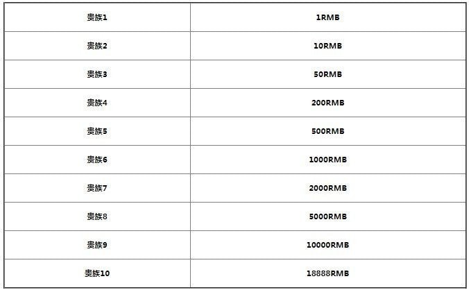王者荣耀贵族等级价格2022最新版_王者荣耀1-10贵族等级价格表一览
