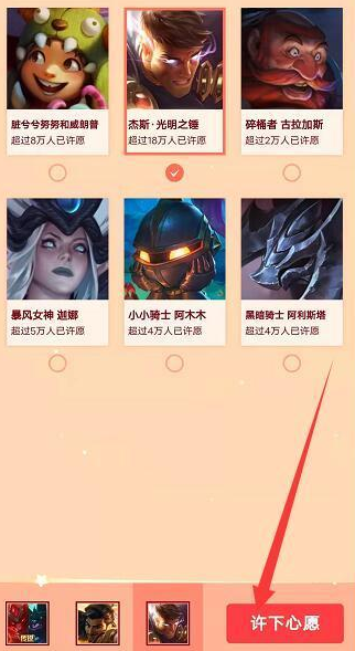 5、最后在界面选择自己需要的英雄皮肤即可,点击许下心愿。 26号之前都可以许愿。
