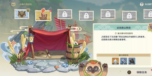 我们可以在活动主页板上看到第二个小章节已经解锁了。 今天的任务不需要再前往镇守之森与五百藏互动啦,但我们需要前往璃月的孤云阁寻找吉法师。