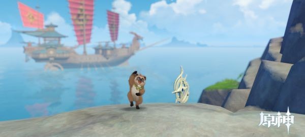 到达目的地之后,我们与吉法师交互触发剧情,根据剧情提要,我们需要捕获一只岩晶蝶,并将晶核交给吉法师。 将获取到的晶核交给吉法师后,会触发下一段剧情。 剧情中派蒙提议带吉法师前往死兆星号看看,这时我们需要先帮吉法师与死兆星号留影纪念。