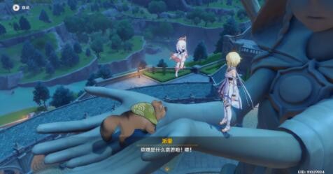 3、然后我们前往教堂前的风神像。 4、我们登上神像的掌心。