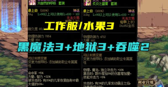 水果上衣和工作服上衣的定位基本相同,所不同的点在于,工作服上衣需要搭配头肩和腰带,所以只能走“冰火”2种属强,搭配方式也都是一样的,【工作服/水果3+黑魔法3+地狱3+吞噬2】,可以将工作服上衣看成“小水果”。