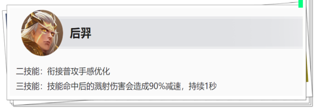 改动:使用一技能后重置普攻冷却时间 以前孙尚香使用A1A连招或1AA连招时,打出第二下普攻时会有短暂的卡顿。 此次调整就是取消了第二次普攻的停顿,让孙尚香可以更快、更流畅的打出第二次普攻,尤其前期对线时会有很大的帮助。 (2)后羿增强