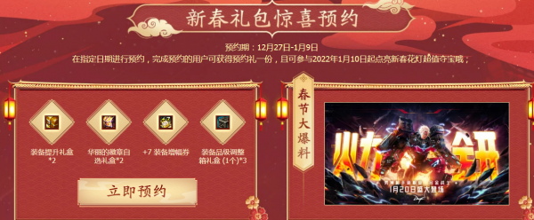2、因为在嘉年华的爆料里面,删除34,新职业合金战士都将上线,也就是说1月20日就是全新大版本,那么这次的大版本伴随而来的肯定就是春节版本了,那么春节礼包自然是有的。