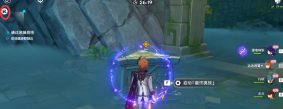 在启动最终挑战机关之前,可以点击左上角的任务按钮看看试炼任务是不是完成了 最终BOSS:两个火斧丘丘人+丘丘岩盔王