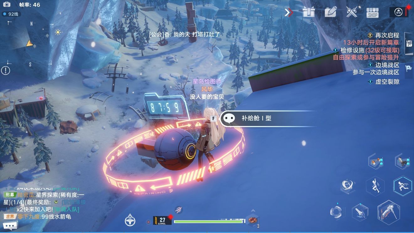看守宝箱的要吃滋滋烤肉才能让我们开宝箱,宝箱里面有旅行者号-引擎(宝箱位置在海上基地最上方)。