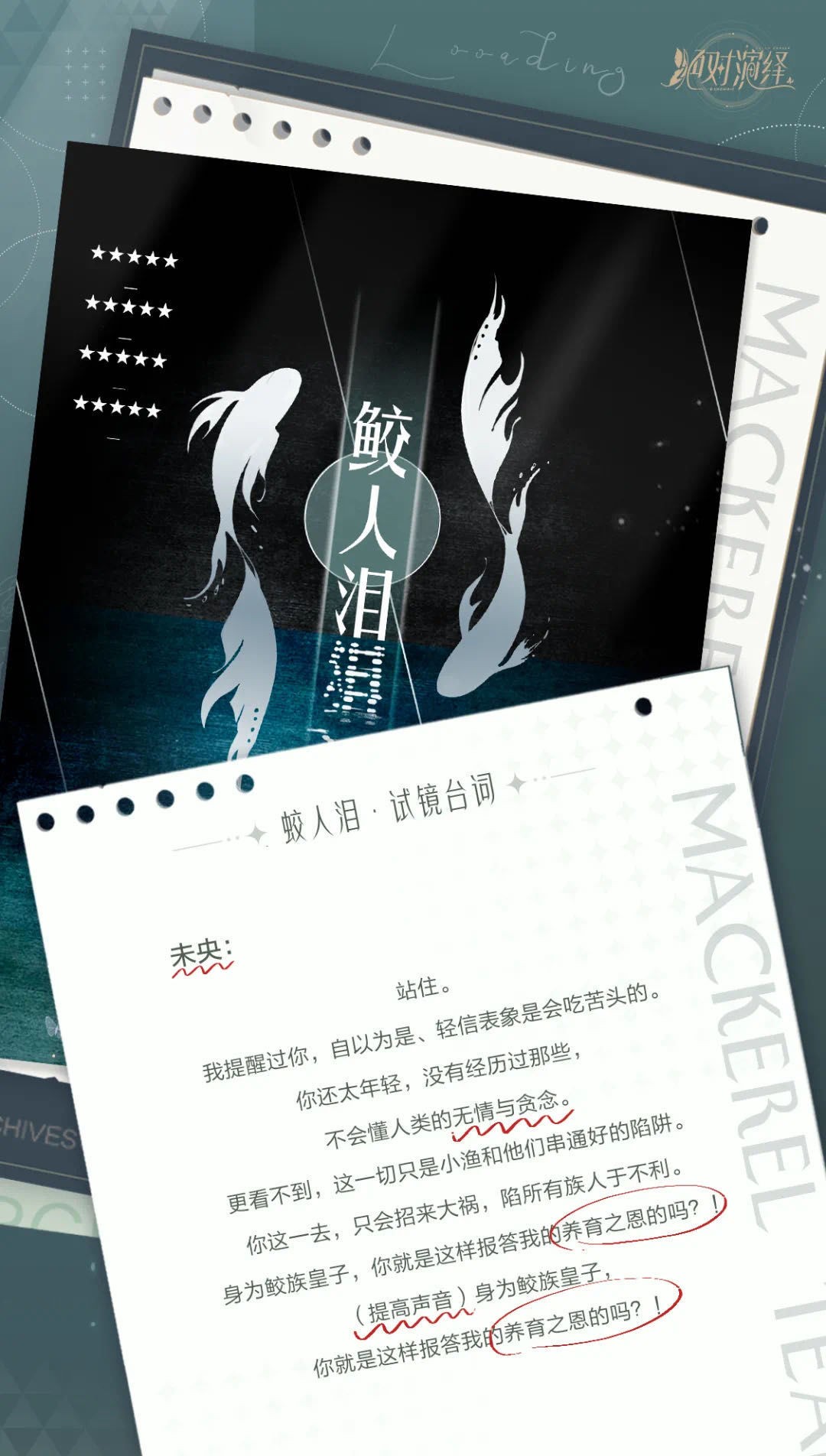 新剧爆料,黑马预定?大女主反转?《绝对演绎》“神本”试镜物料放出! “归墟海上,时代流传着鲛人与永生的传说。历代巫祝为宿命所困,灵魂永驻,轮回不止......” 这段唯美台词出自于《绝对演绎》近期首曝剧本——《鲛人泪》。《鲛人泪》的题材是跨越种族的禁忌爱恋,故事以东方奇幻为背景,将《海的女儿》角色反转后改编而成,讲述灵魂被困在轮回中的巫祝一族获得真爱、斩断命运循环的故事
