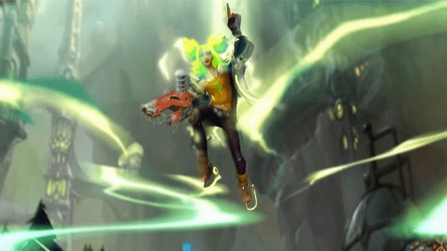 她的大招也很有意思,演示中在面对多人追击的情况下,zeri选择反打,高高跃起然后释放一道圆形的冲击波,随后自己将进入高爆发,高速移动和高速射击模式,而这道冲击波应该也是类似于希维尔大招的设定,在作用范围内的队友也将享受伤害加成,后续似乎还有护盾加持。