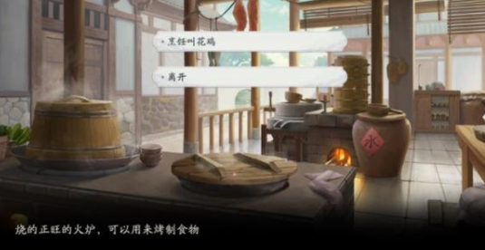2、开启多个场景,三个闪光,与刘福生对话 进行了解3个菜的情况,制作叫花鸡,荷花池的闪光-得到荷叶,亭子旁边闪光点-得到泥土,去布衣街买鸡-集市,农田获得拾取到粟米,集市的屠夫获得鸡肉,回到后厨制作叫花鸡。