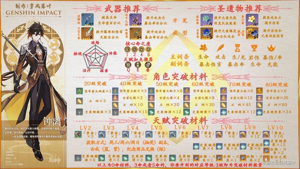 原神钟离突破材料清单图片一览2022最新_原神钟离突破材料数量总和要多少石珀