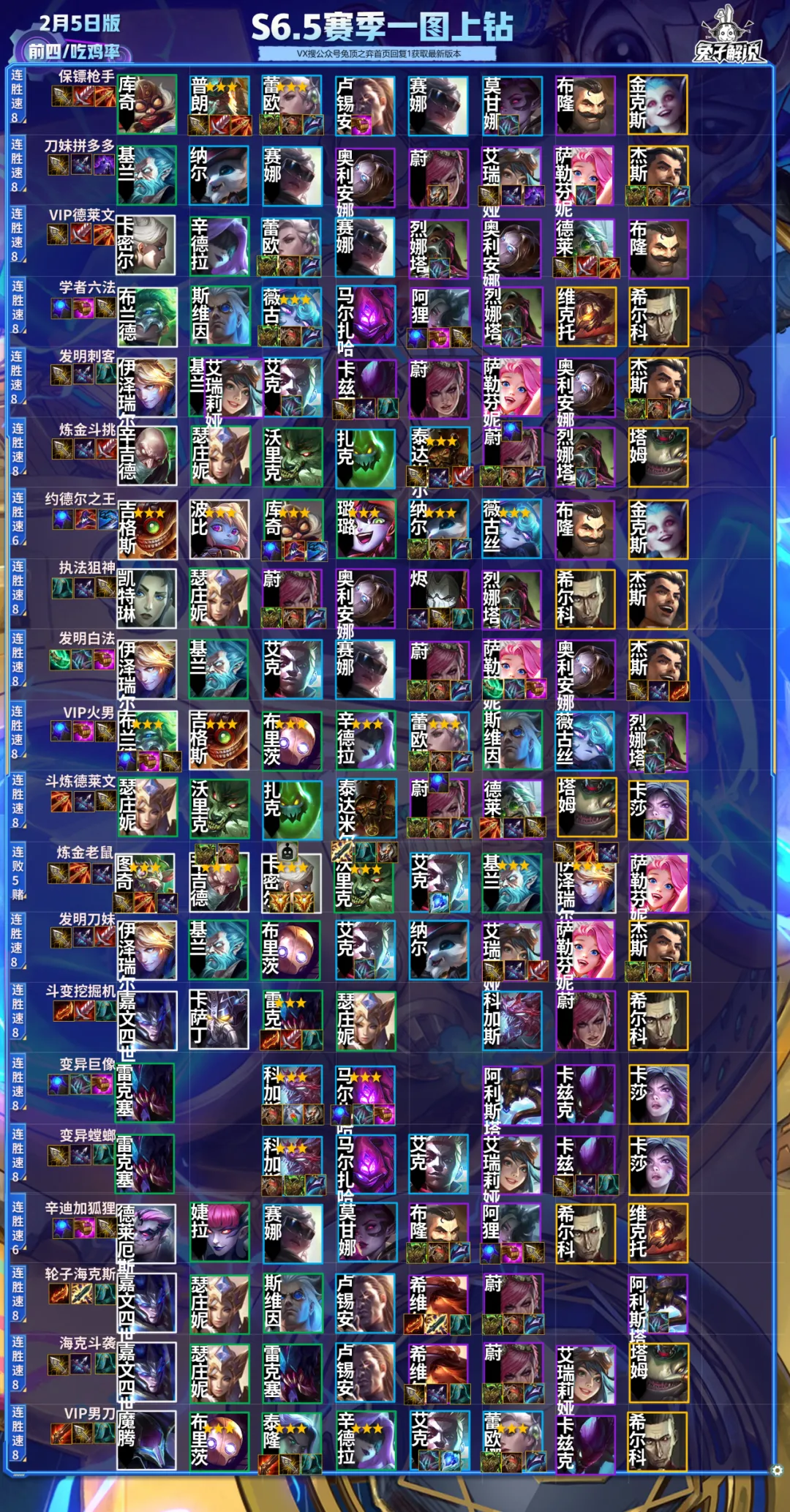 一图上钻放不下的阵容这里还有,到这兔子就完成了所有基础数据的整理了,兔子也不是神,不可能现在就练会所有的人口,接下来就是一个个练阵容和发现新阵容的时候了。