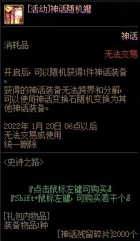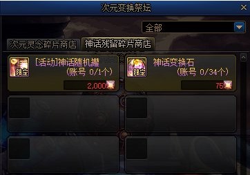 每个账号可以兑换1个神话随机罐,兑换时消耗2000个神话残留碎片。罐子开启后,随机获得一件神话装备。