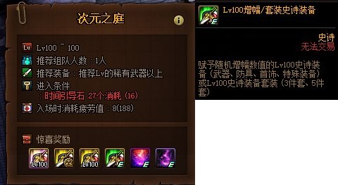 玩家在次元边界地下城中击杀boss时,有一定的概率会掉落100级史诗装备和神话装备,必定掉落神话残留碎片。