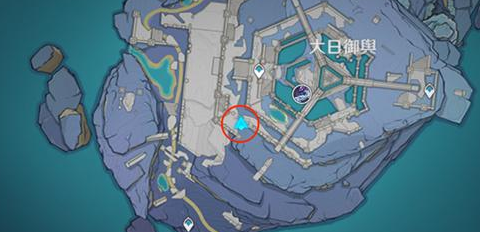 2.从上图标记大日御舆的锚点处向西南方向; 3.在一只遗迹守卫的旁边,打破爆炸桶之后,击败守卫; 4.在“常夜”状态下,攻击进入室内右手边的三角机关; 5.从室内出去后向南找到一处“日月之轮”,并转换至“白夜”状态;