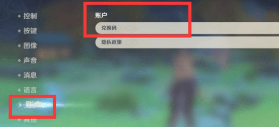 3、点击账户,再点击兑换码,输入即可。