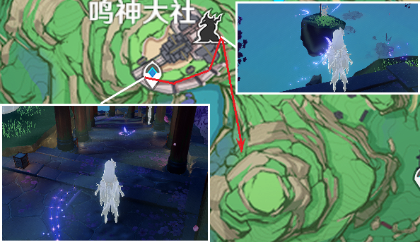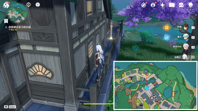 2、将时间调至21点—23点,跟随指引来到任务地点。触发剧情 3、开启元素视野追踪。大致路线如图,先一路顺着回廊做到底,然后拿上旁边的雷种子一路飞过去即可