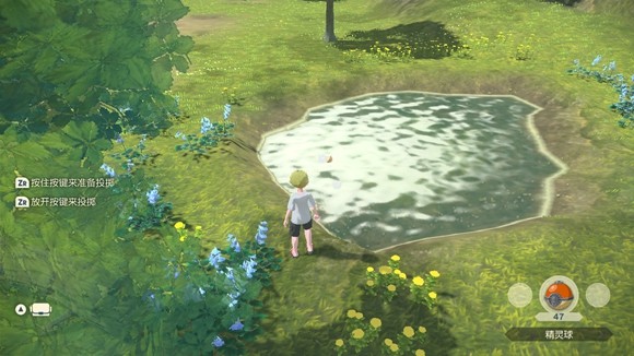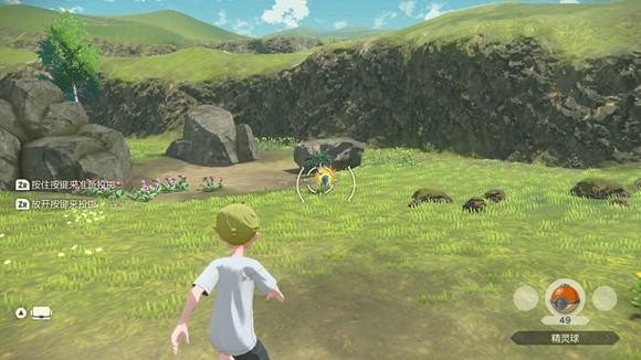 我们去捕捉三只宝可梦吧,靠近宝可梦就按ZR准备投掷,瞄准放开就可以了,不过在捕捉第三只的时候会出现捕捉成功,需要再次捕捉。