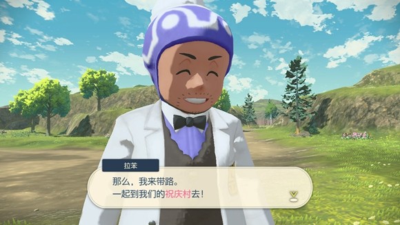 捕捉成功后,拉笨博士就夸我们聪明,控球技术一流,然后我们给出了手机的信息给拉笨博士看,之后拉笨博士就说要完成这个地区的第一本宝可梦图鉴,为了完成这个任务,我们就跟博士一起回去祝庆村吧。