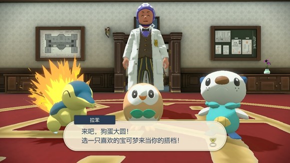 一觉醒来,我们来到了全新的世界,醒来的第一眼就看到了3只宝可梦与拉笨博士,原来是他追着这3只逃跑的宝可梦才遇到我们的。