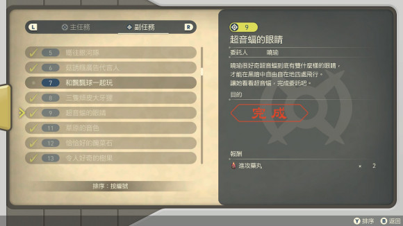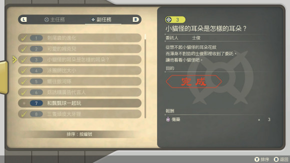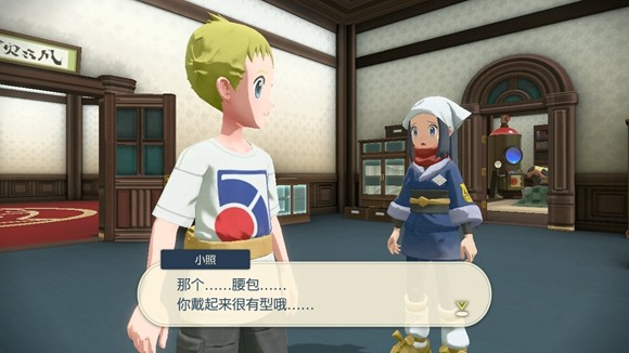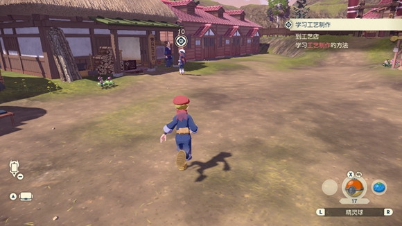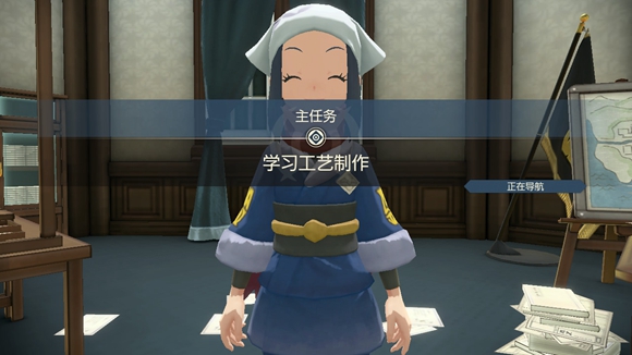 追上小照吧,按住ZL注视宝可梦,就能打开宝可梦图鉴,这样就能查看课题了。 一路上追着小照,然后一边讲解图鉴课题,完成课题之后,小照会赠送工艺套组,就是没有到工艺制作台也能制作,前提仅限于腰包的材料。