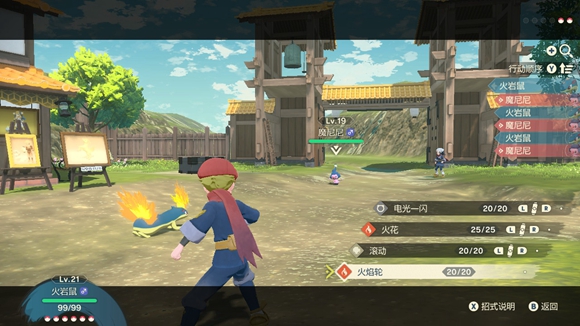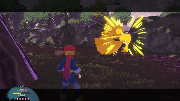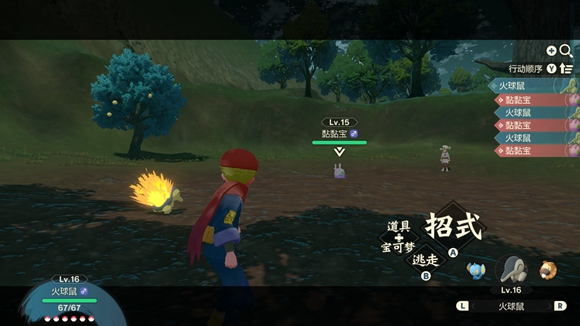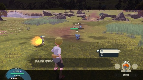 战斗胜利之后会给我们5个伤药,跟门口的传送NPC对话,传送至原野基地。 第一只宝可梦是大牙狸,在前面就能看到,捕捉成功。