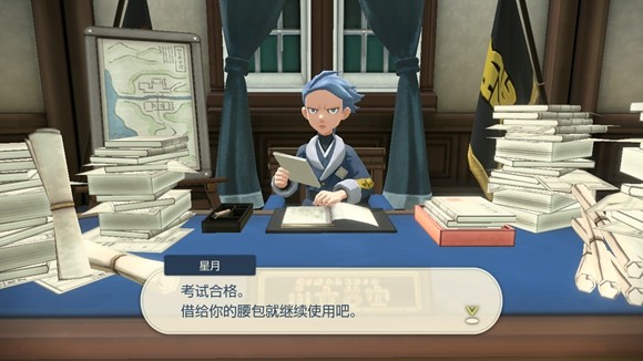 捕捉完三只宝可梦后就回去祝庆村交代任务吧,星月组长奖励一套调查组制服和草鞋,回去宿舍换上