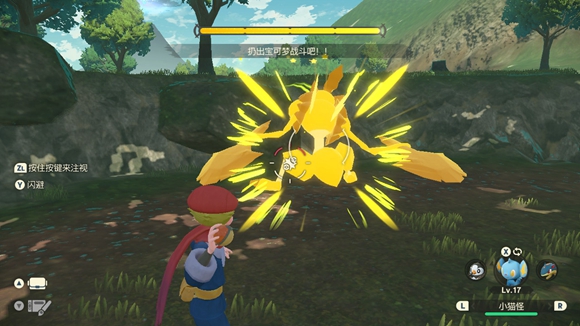 战斗的时候必须要注意呆在宝可梦后边,因为宝可梦之间的战斗会伤害人类。