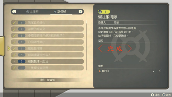 然后接受新的任务,前往红莲湿地调查月月熊,不过要想前往新的区域,必须要把队员星级提升到二星以上,如果不满足二星的话,就先去完成课题图鉴吧。