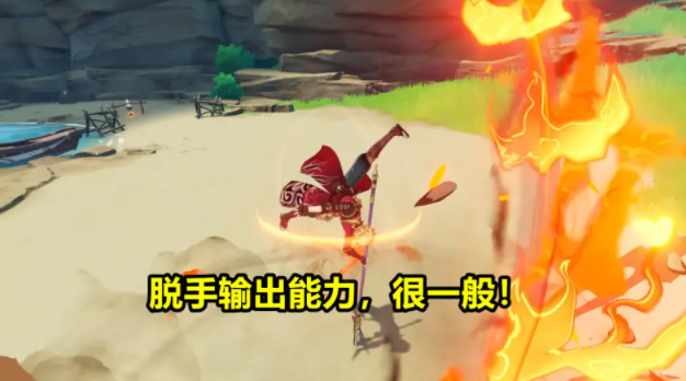 首先,这个火伤的范围很小,从测试服的演示视频来看是以目标为中心左右各1个身位,其次,这个火伤不具备锁面板机制,且该伤害效果为后手触发,最重要的一点是,这个伤害很低,13级大招只有123%倍率,比旋火轮倍率低了近一半。这就意味着,这个“脱手范围火伤”,要么无法触发元素反应,要么触发反应很亏! |